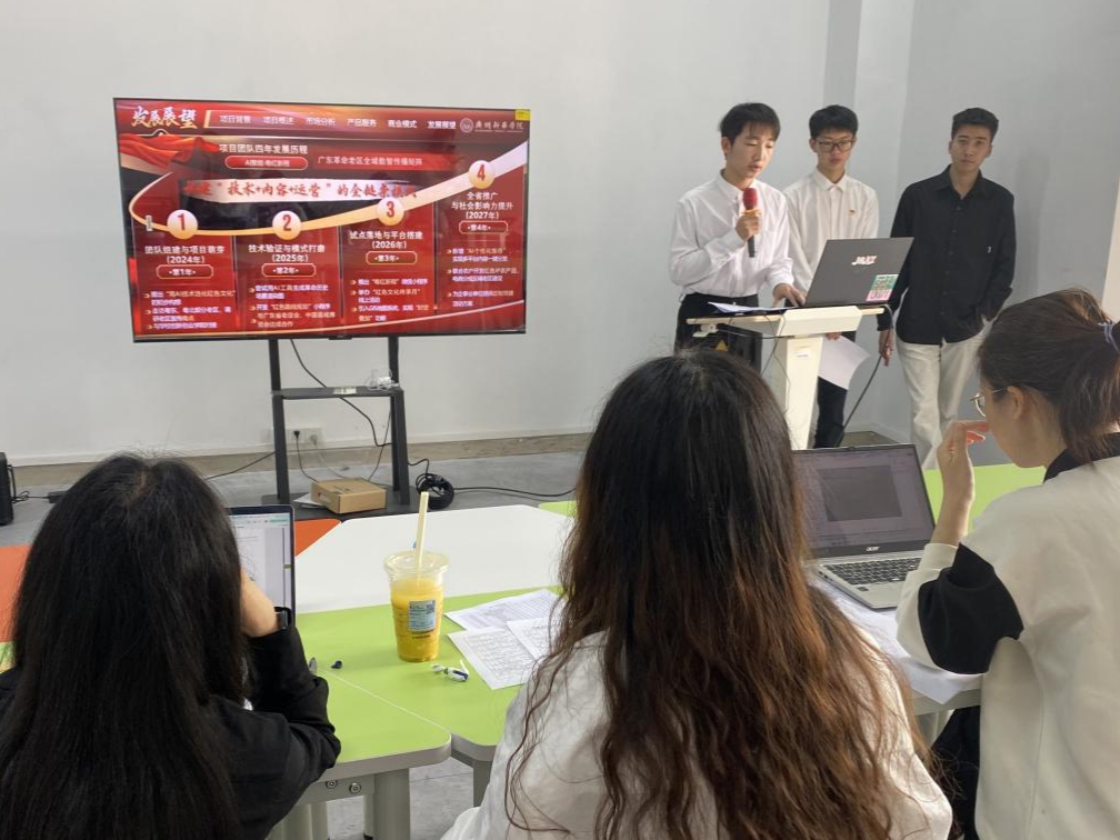路演过程中,各团队聚焦真实社会需求与细分市场痛点,展现出强烈的创新意识与实践能力。其中,“风·光·守”项目,已申请4项专利并完成超60处水域实地调研;“新星孵化”项目致力打造产教融合型电商服务项目,整合高校学生资源与品牌方需求,提供从平台入驻、运营托管到内容推广、私域直播的全链路服务,同步孵化学生达人与运营人才,实现品牌降本增效、学生技能变现、高校产教融合的多方共赢。“AI珍珠直播平台 ”、“SUPSMELL”、“AI聚能·粤红新程”等项目体现了学生跨专业协作,学以致用的探索精神。